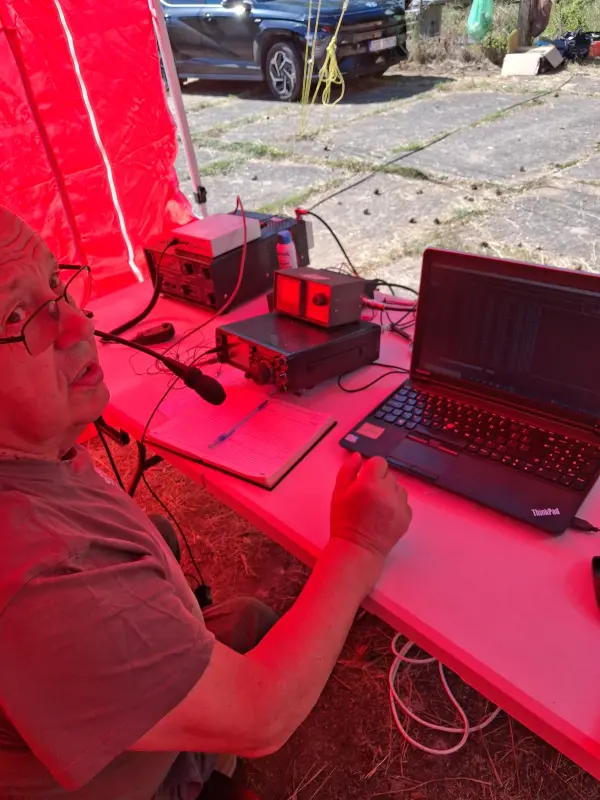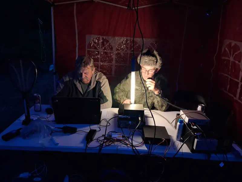 W tym roku, podobnie jak w ubiegłym, zainstalowaliśmy się na wysokości 168 m n.p.m. Postawiliśmy maszt o wysokości 10 metrów, na którym zamontowane były dwie anteny kierunkowe Yagi (9 elementów). Sprzęt radiowy to Yaesu FT-991A oraz wzmacniacz lampowy o mocy 200 W. Całość była zasilana agregatem o mocy 1,5 kW.
